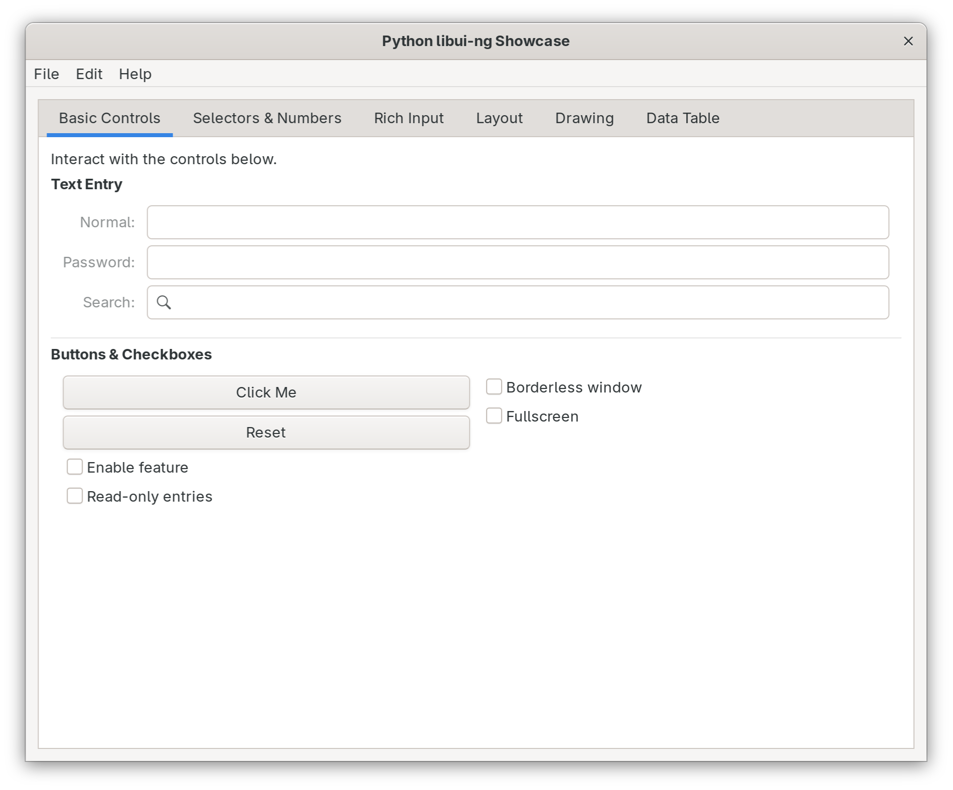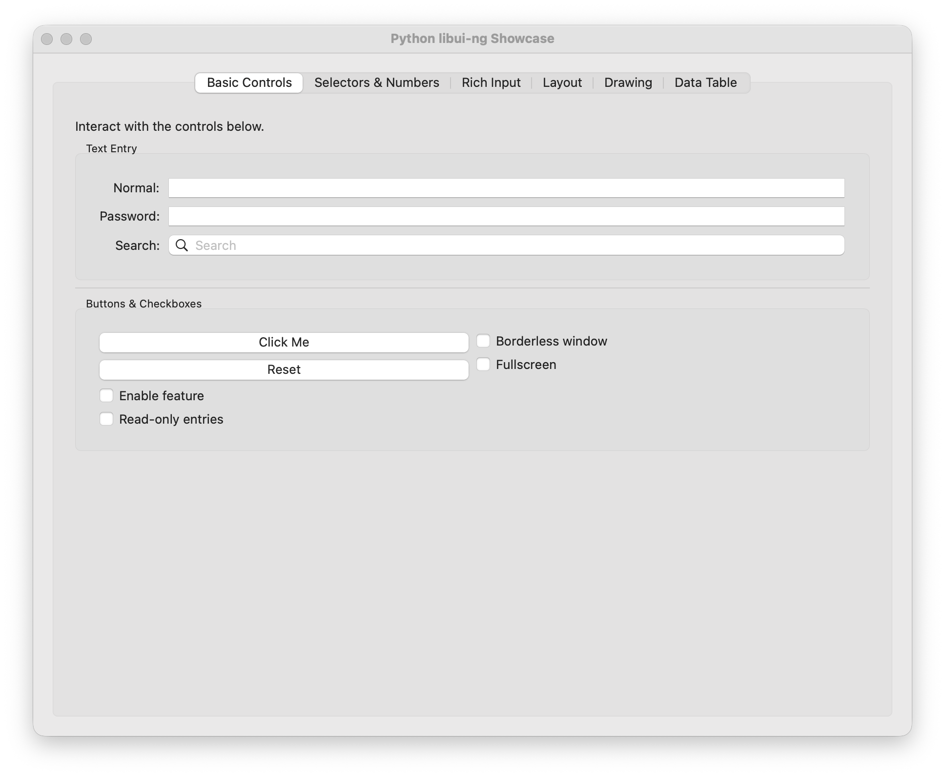 Native GUI toolkit for Python. Lightweight bindings for libui-ng — real native widgets on Linux (GTK+3), macOS (Cocoa), and Windows (Win32).